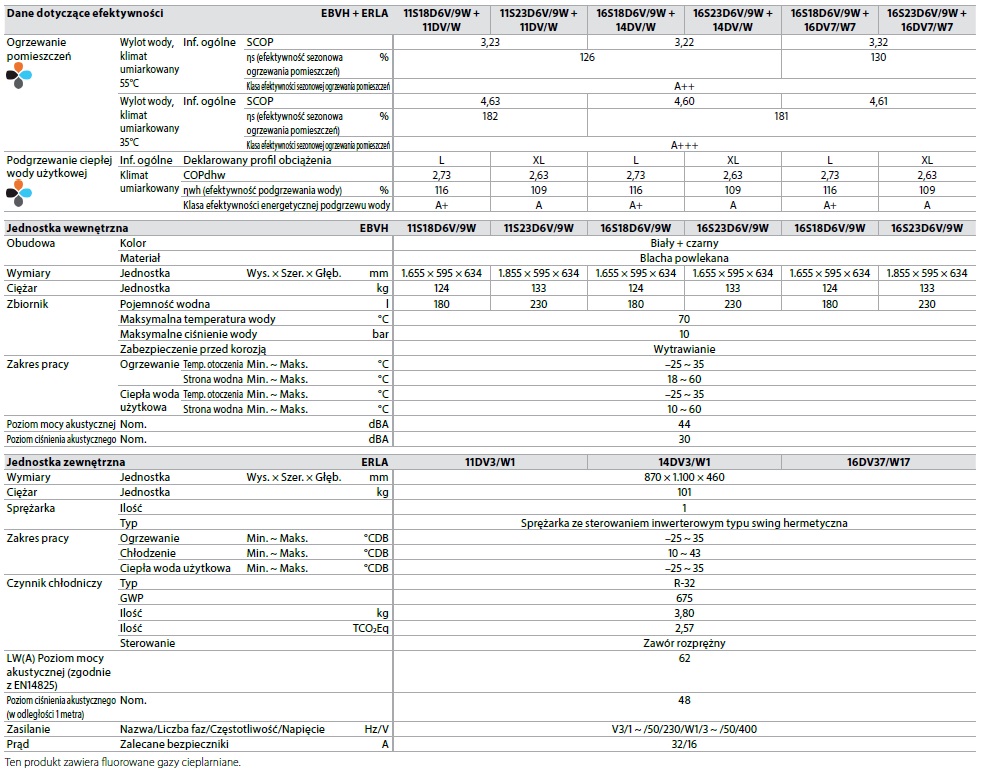 Jednostka zewnętrzna | ERLA11DW1, ERLA14DW1, ERLA16DW17 |