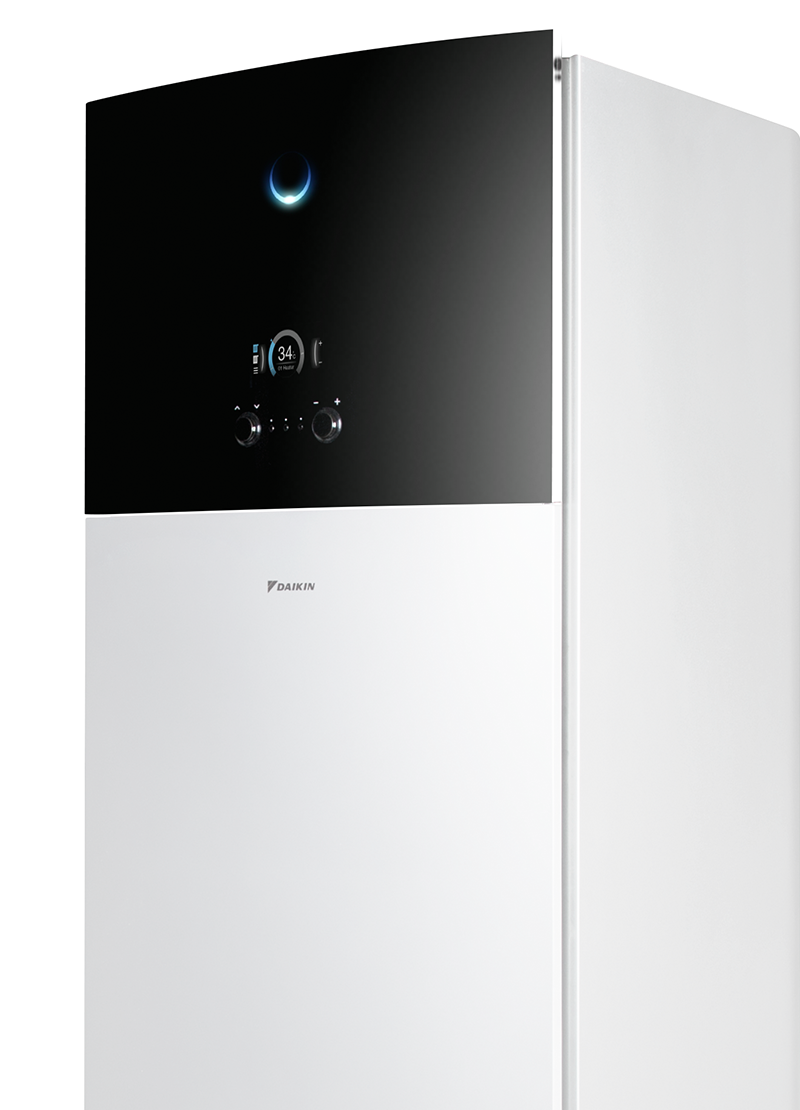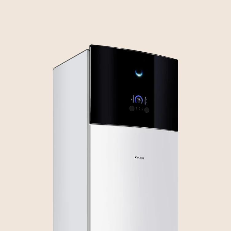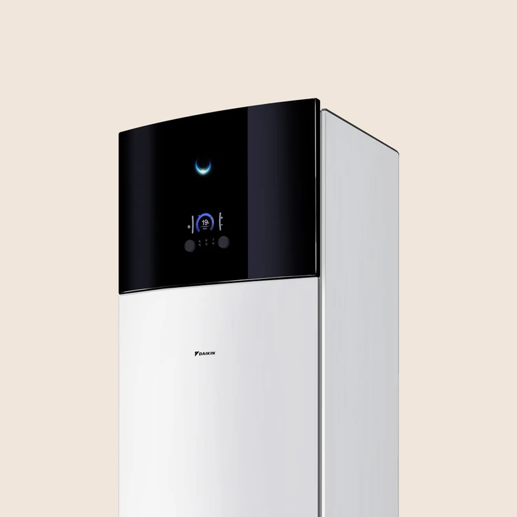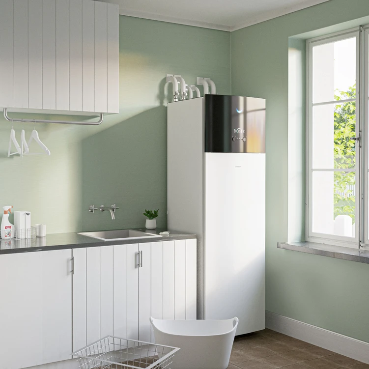 zintegrowana pompa ciepła powietrze-woda z wbudowanym zasobnikiem ciepłej wody użytkowej, łącząca wysoką efektywność energetyczną z kompaktową konstrukcją i nowoczesnym designem.